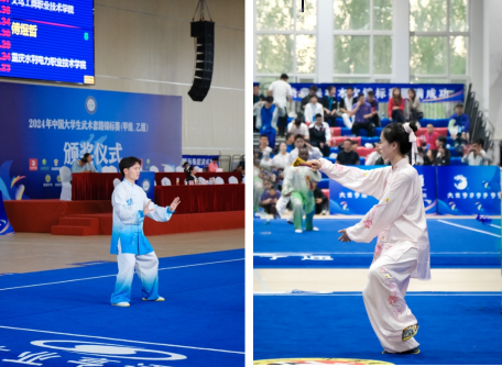 为迎接今年的锦标赛,校武术协会指导老师胡凯教授从百余名会员中精挑细选出3名学生组队参赛。面对学生学业紧张、起点较低、训练条件欠佳等困难,通过科学训练、精心选项备战,经历夏战高温、冬斗极寒的历练,秉持不惧困难勇攀高峰的地质人的精神,在本次比赛中取得金牌一枚,银牌两枚,一个第六的好成绩。